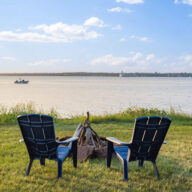 The property features over 1,500 feet of private beachfront shoreline wrapping around a point with panoramic views across the water to historic Georgetown — a stunning backdrop in every season.