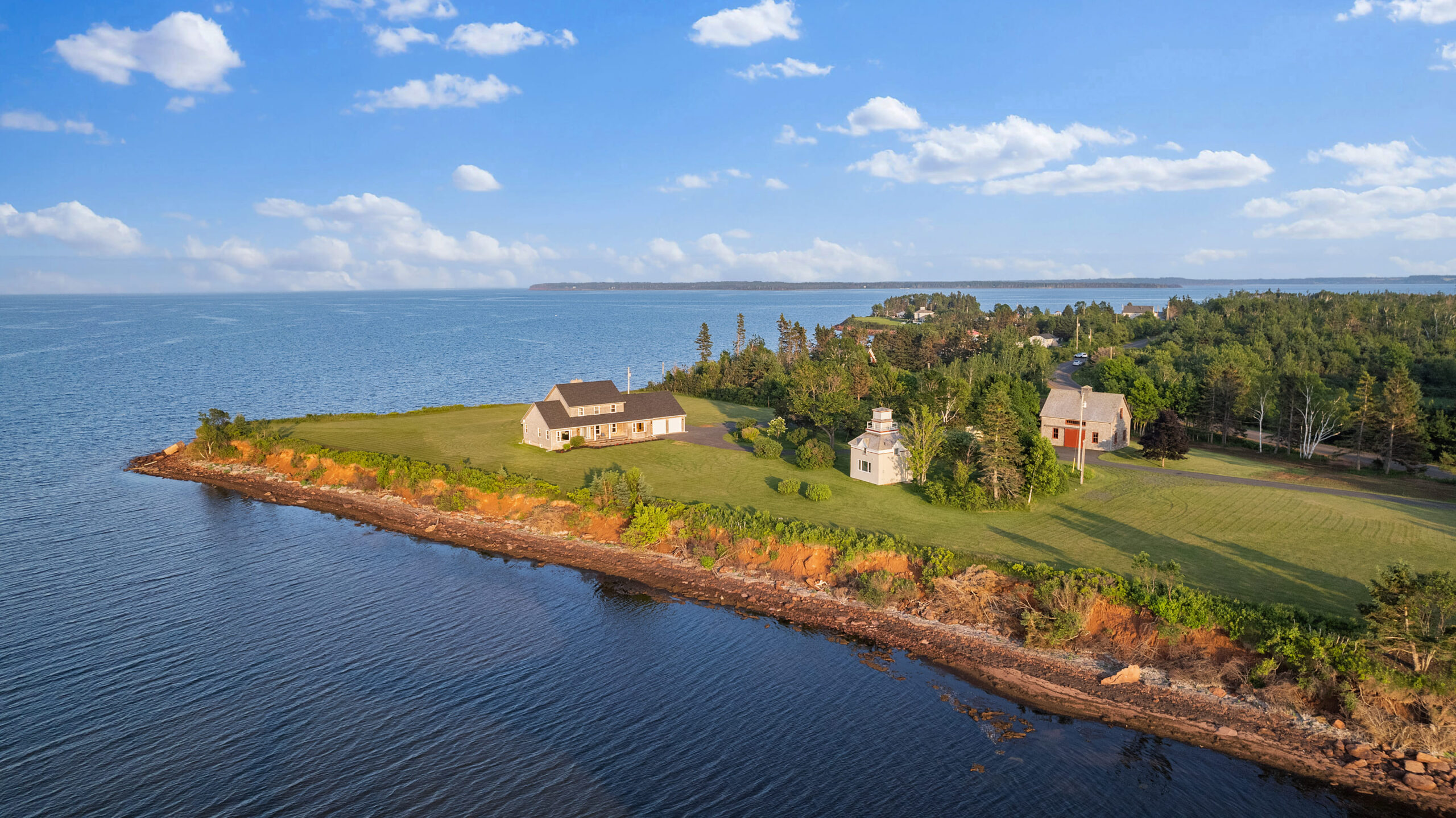 This is a unique opportunity to own a 6-acre private retreat with over 1,500 feet of beachfront on PEI’s eastern shore — complete with a main residence, lighthouse guesthouse, carriage house, and music studio.