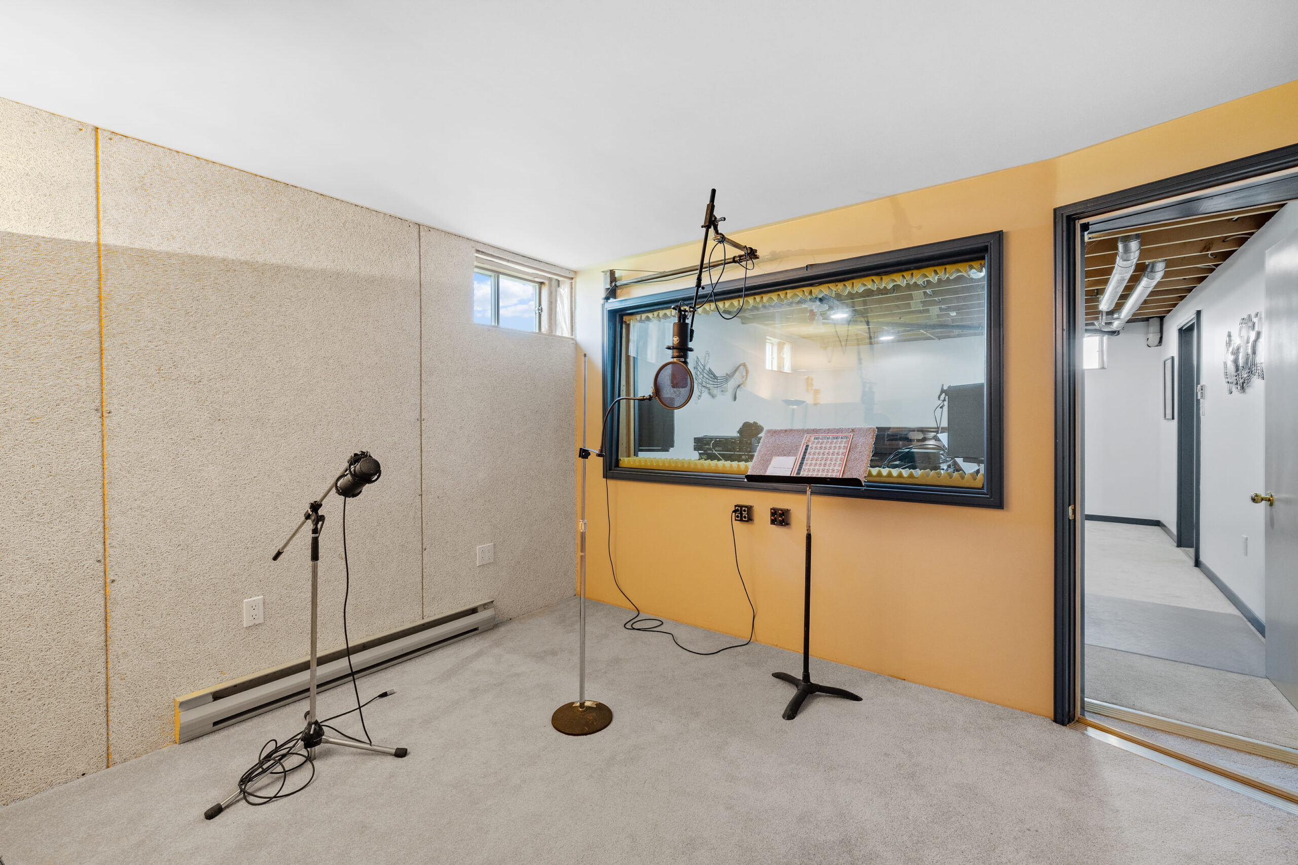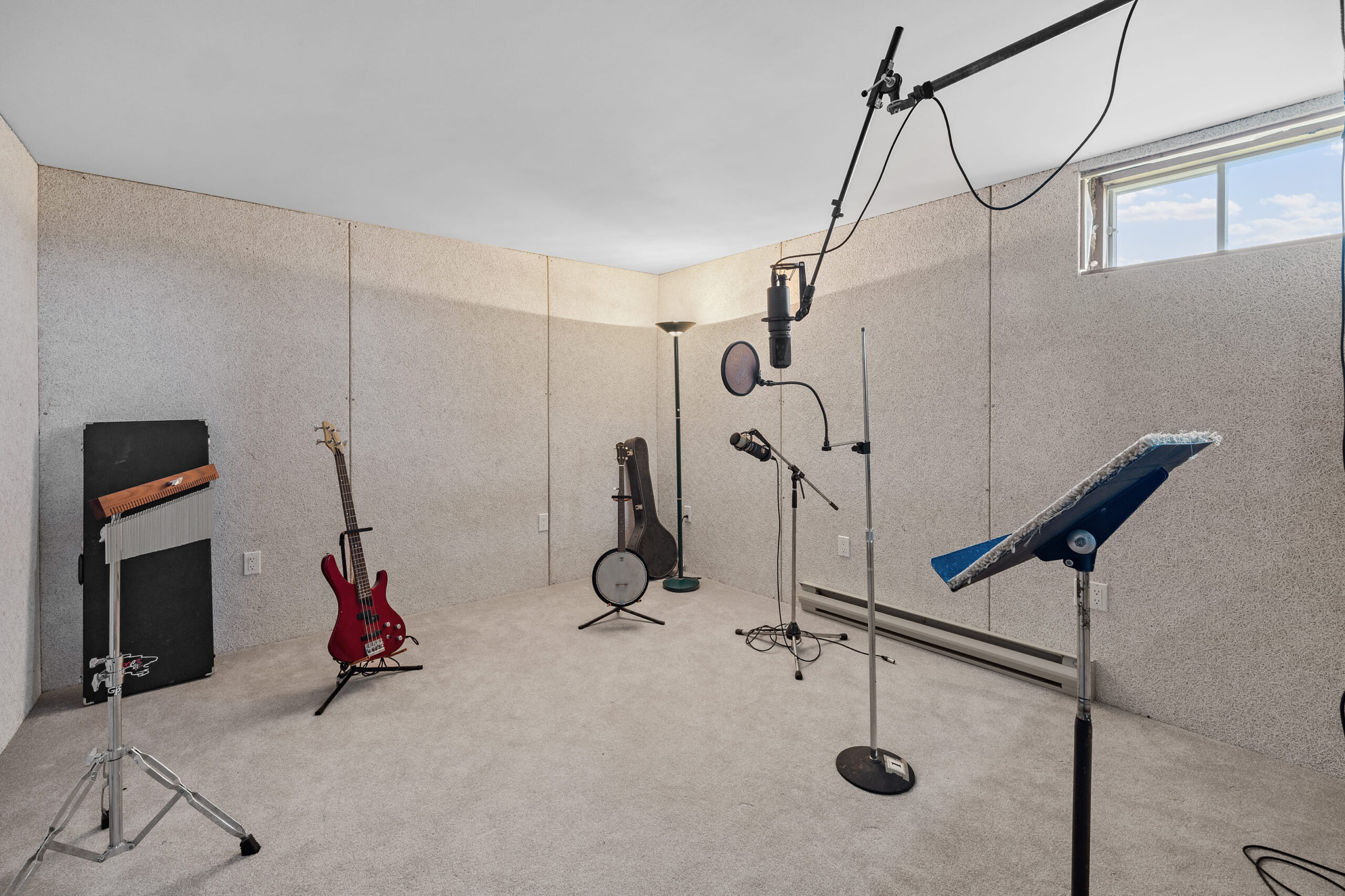 A spacious, acoustically treated music and production studio provides a quiet, inspiring environment for musicians, podcasters, or content creators — fully separate from the main living areas above.